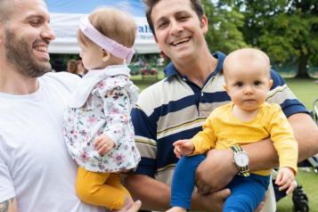 Smiling young dads with their babies in a park